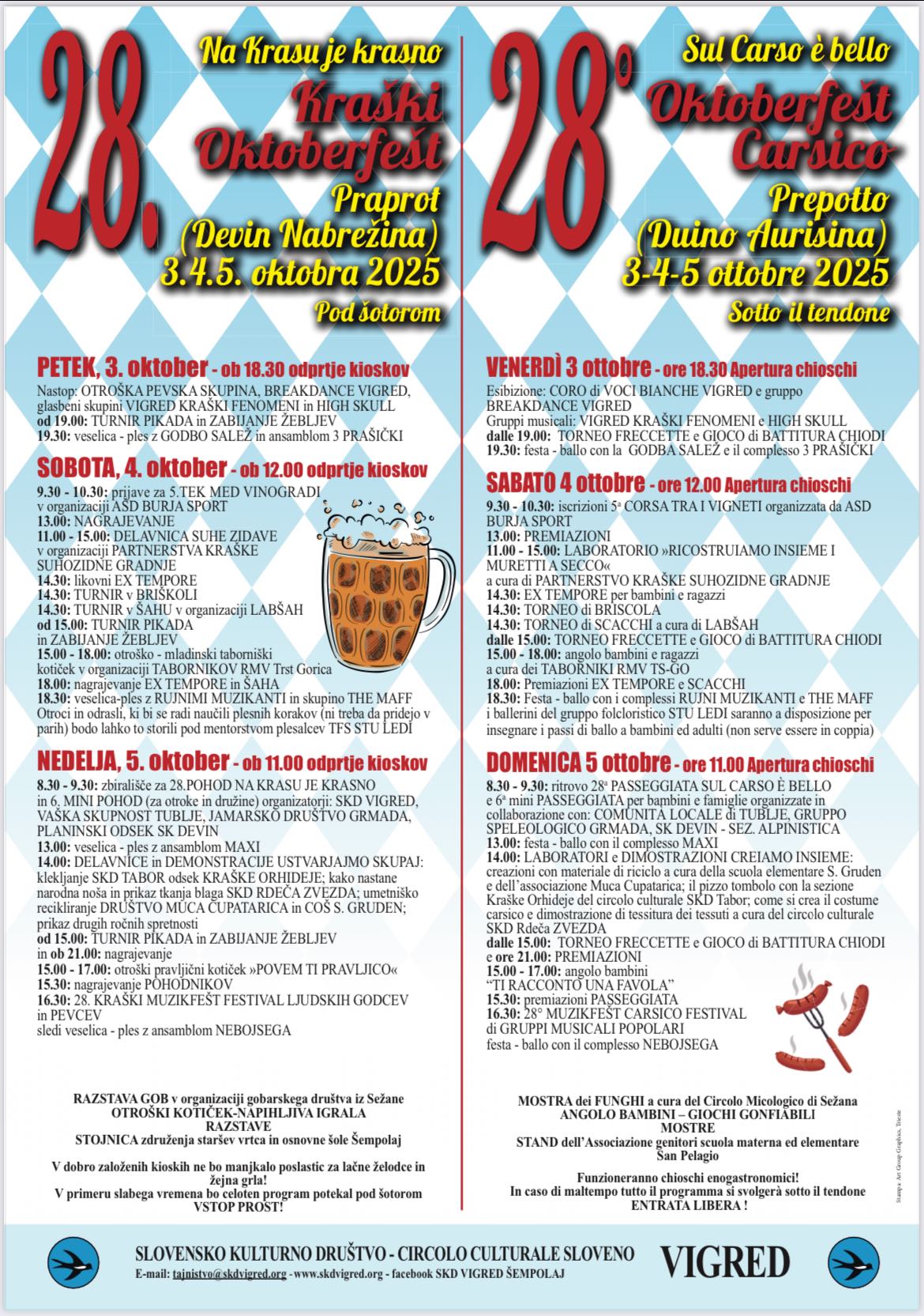 Jesenski dnevi opozarjajo, da se hitrih nog bliža praznik Kraški oktoberfešt, letos že 27. po vrsti, ki ga prireja šempolajsko društvo Vigred na prireditvenem prostoru v Praprotu.