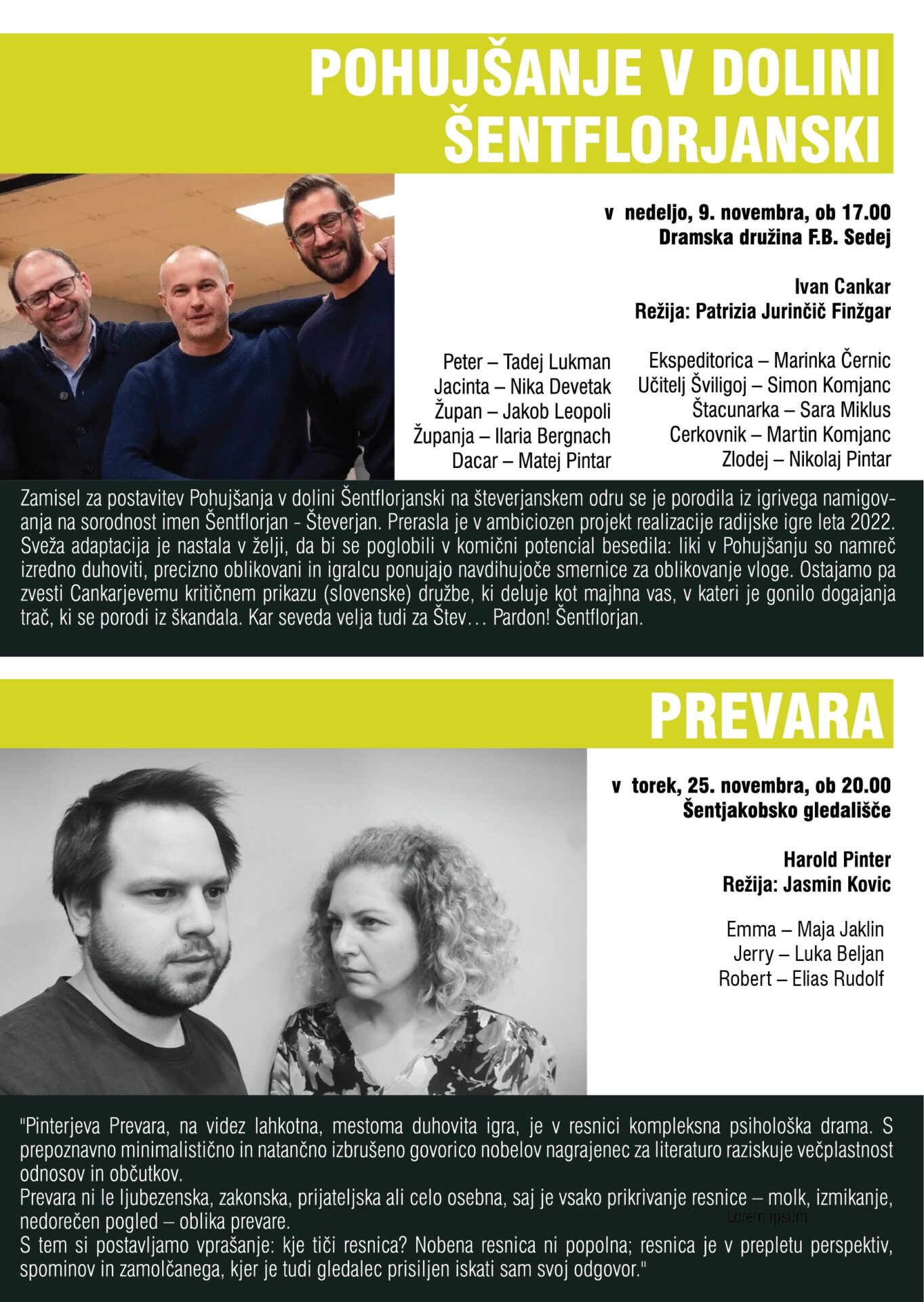 Premiera: 8. november, ob 20.00, Župnijska dvorana F. B. Sedej – Števerjan.