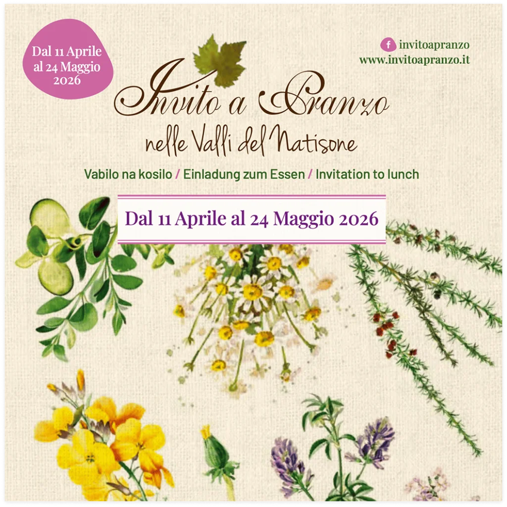Začela se je pomlad in mize v Nadiških dolinah se obogatijo z vonji trav in rož. Od 11. aprila do 24. maja se vrača gastronomska iniciativa Vabilo na kosilo spomladi, na kateri letos sodeluje 9 restavracij z meniji in degustacijami po posebnih cenah.