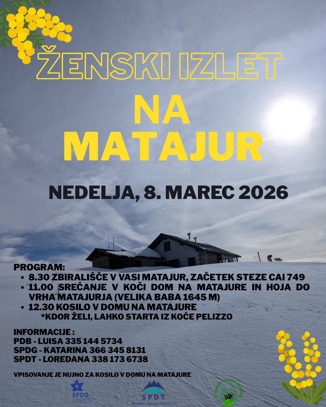 SPDG, SPDT in PDB organizirajo v nedeljo, 8. marca, planinski izlet na Matajur.