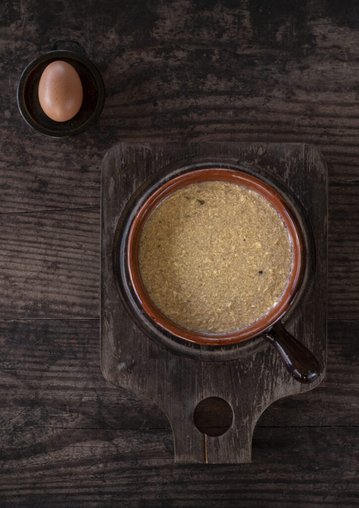 Pripravi se jo z jajčnimi vlivanci in postreže še toplo. Prežganka ali prežgana juha spada med močnate juhe in je stara slovenska jed. V kulturi prehranjevanja skozi čas je bila ta preprosta juha pogosto na mizi.