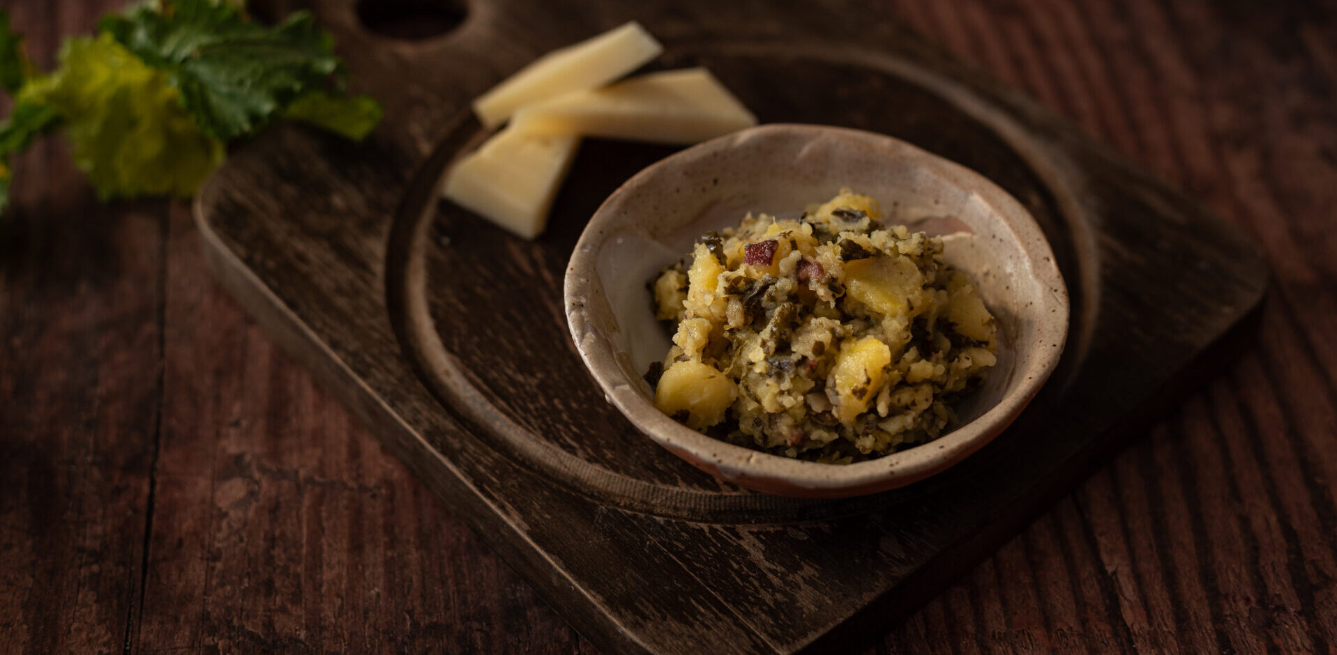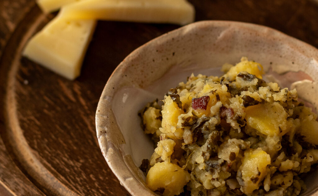 Stakanje je nekakšen pretlačen krompir, ki mu dodamo liste repe (iz brovade) in svinjsko mast ali ocvirke. Nekateri dodajo česen ali prepraženo čebulo in kis. Namesto repnih listov se zelo pogosto uporablja stročji fižol ali druga listnata zelenjava.