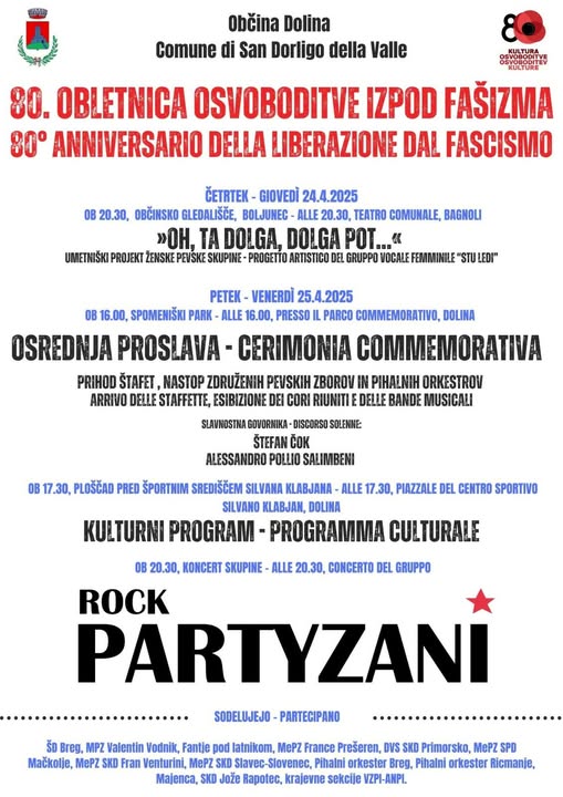Il Comune di San Dorligo della Valle – Dolina, in collaborazione con i circoli locali e la sezione locale VZPI-ANPI, organizza venerdì, 25 aprile, la cerimonia commemorativa in occasione dell’80° anniversario della liberazione.