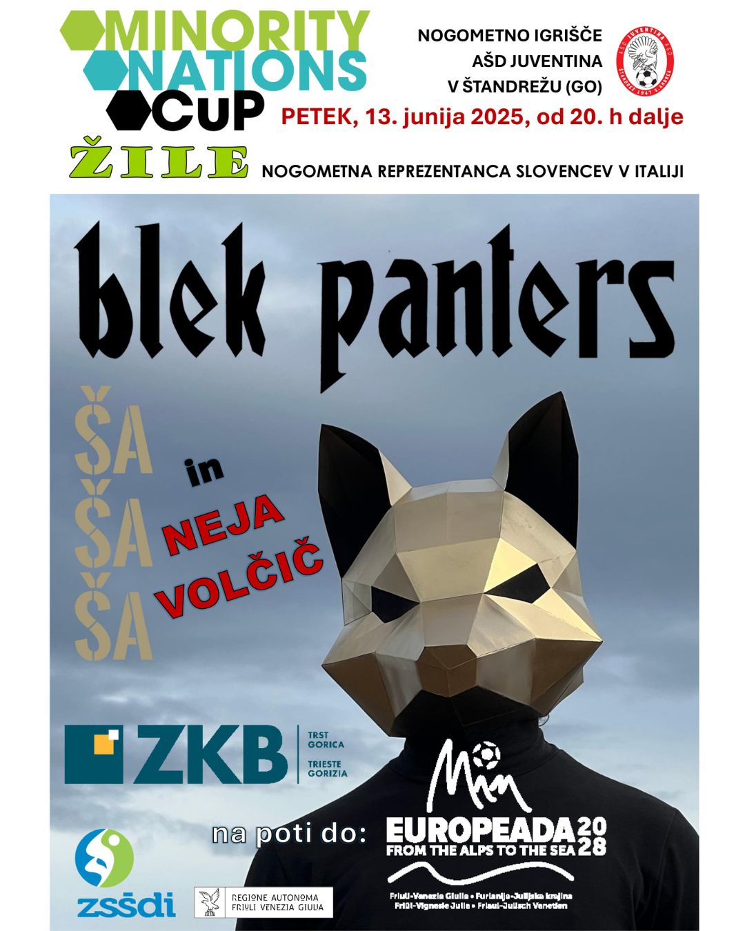 Il gruppo Blek Panters si esibirà alle ore 21:00 nell’ambito del programma del torneo di calcio Minority Nations Cup. Prima di loro si esibirà la cantante Neja Volčič.