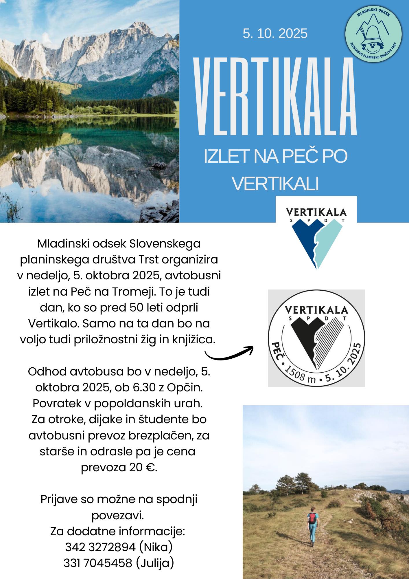La sezione giovanile del Club Alpino Sloveno di Trieste organizza domenica 5 ottobre 2025 una gita a Monte Forno. È anche il giorno in cui, 50 anni fa, è stata inaugurata la Vertikala. Solo in questa data saranno disponibili un timbro commemorativo e un libretto.