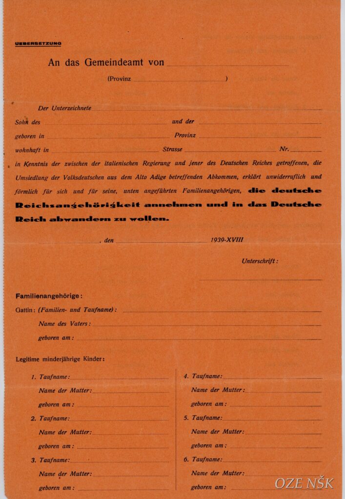 Za možnost opcije in selitev v tretji rajh je optirala velika večina nemško govorečega prebivalstva Kanalske doline, ki se je odpravila v avstrijska mesta, kjer so jih čakale uradniške in druge službe.
